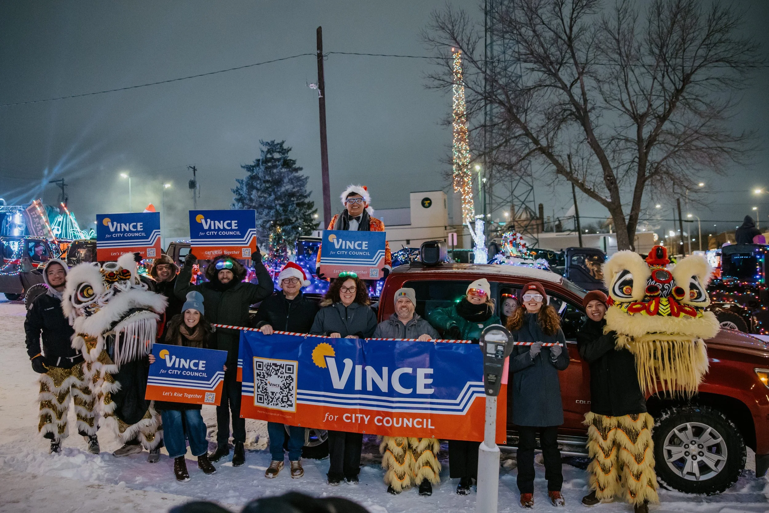We brought Asian lion dancers from the Vietnamese community, a tradition close to my heart and my family's story. Watching those lion costumes move through downtown Sioux Falls, with volunteers from our campaign walking alongside them, felt like exactly the kind of thing this city needs more of. A celebration of where we come from, woven right into the fabric of a beloved Sioux Falls tradition.