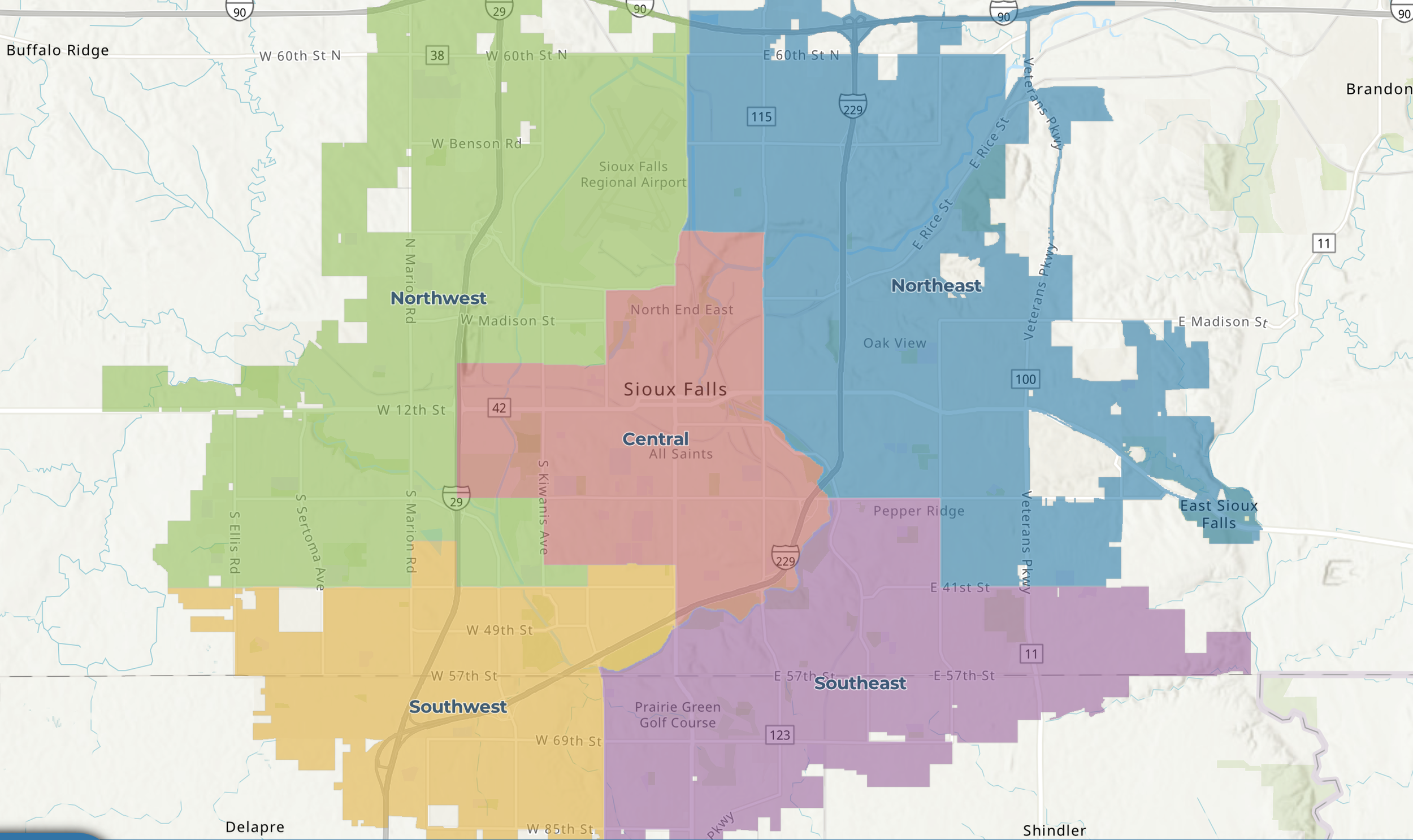 Sioux Falls elects most of its council members by district — specific seats for specific parts of town. At-Large is different. Sioux Falls has three At-Large seats, labeled A, B, and C. I'm running for At-Large A. Either way, At-Large means the same thing: the seat represents every neighborhood, every ZIP code, every corner of this city.